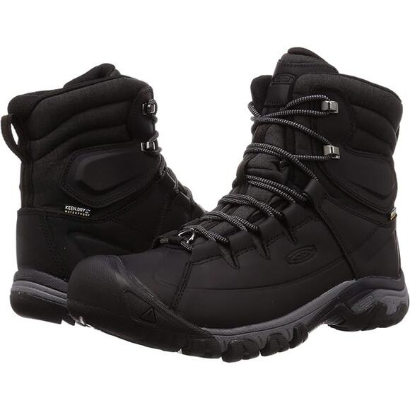 KEEN Men’s Targhee Lace High Polar Insulated Snow Boots in Black/Rave, size 13M. Built for winter with KEEN.WARM insulation, waterproof protection, and a rugged high-cut design. Features a durable rubber outsole for excellent traction on snow and ice, plus all-day comfort for outdoor cold-weather conditions.