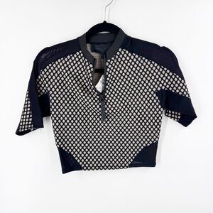 NWT KENDALL & KYLIE BLACK MESH ZIP FRONT CROP TOP SIZE X-SMALL. RETAIL $128