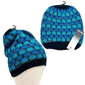 NWT KENSIE Knit Beanie & Infinity Scarf Set 2PCs Blue Turquoise Geometric