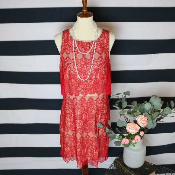 NWT KENSIE Red Layered Lace Dress