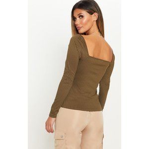 NWT KHAKI LONG SLEEVE SQUARE NECK RIB TOP
