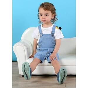 The KIDSCOOL SPACE Baby Unisex Jean Overalls in blue are stylish and comfortable denim shortalls designed for toddlers aged 2-3 years. Made from soft and durable denim, these overalls feature adjustable straps for a customizable fit and easy snap buttons for quick diaper changes. The playful design ensures a fun and practical outfit for your little one, perfect for casual outings and everyday wear.