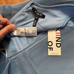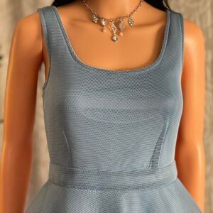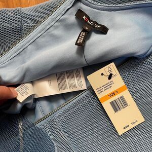 Unique thick blue mesh overlay dress w/ flared hips by KIIND OF in US women’s size S. Lots of stretch to material.