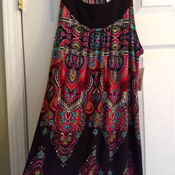 Very colorful and comfy dress, brand new, shoulders to hem is 38" L