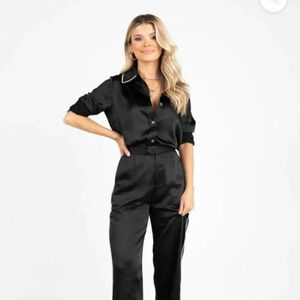 Kittenish All The Rage Black Satin Button Down, size extra small.