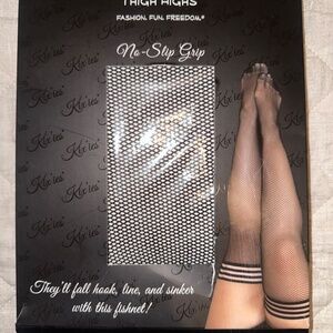 NWT KIXIES Black Fishnet Thigh Highs Size L Size C