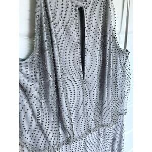 NWT KLEINFELD Storm Gray Beaded Evening Gown with Halter Top with Empire Waist Dress Size 8