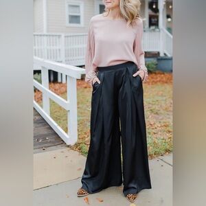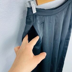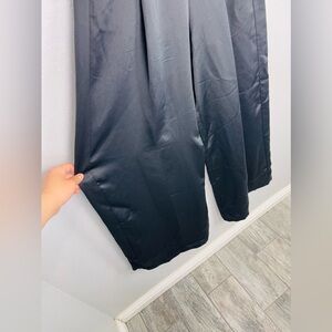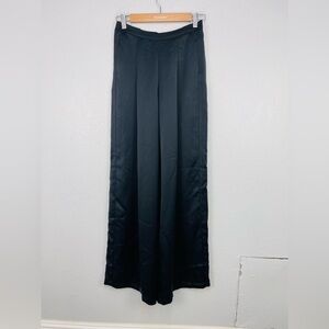 NWT K/Lab Black Sating Wide Leg Elastic Waist Pleated Trouser Pants
