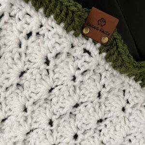 KNANA KNOTS, Baby Lovey, Security Blanket. Forrest Green and White. Crochet afghan . Handmade, warm, soft, cozy. NWT. New with Tags.