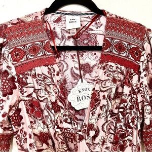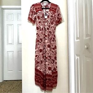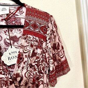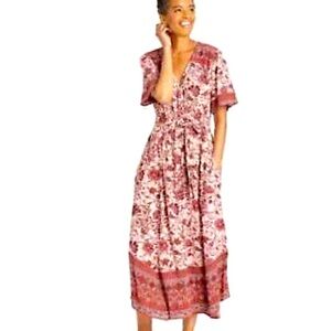 NWT KNOX ROSE Short Sleeve Wrap Tie Duster maxi Dress cottage Rust Floral boho S