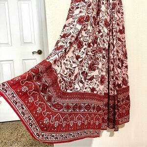 Gorgeous maxi dress. 100% rayon, v-neck, elastic waist lace shoulders.