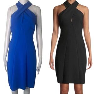 NWT KOBI HALPERIN Prima Cross Front Halter Dress Ponte Knit Azure Blue Size M