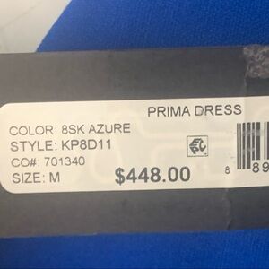 Size Medium. Brand new with tags - pristine condition (hang tag has some light adhesive residue). Color is “Azure” - a bright royal blue (black dress photo is to show fit only - dress is blue). Bodycon stretch Ponte knit fabric: 68% Polyester, 27% Rayon, 5% Spandex. Fully lined. Exposed zipper on back. Shown modeled on a size 0 mannequin - expect fit to look like stock photos. Approximate measurements (taken when laying flat/unstretched- cannot guarantee fit):