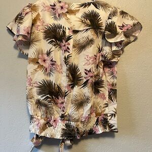 Feather floral wrap blouse set with ruffle sleeves is the perfect summer top.