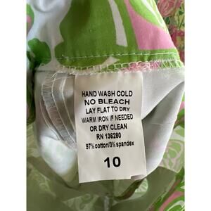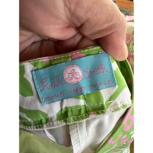New with tags Kaeli Smith size 10 cropped pants. White with green and pink. Good stretch to them. Waist is 16 1/2” across. Inseam is 25” and rise is 9”.