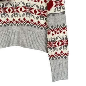 NWT Kaisley Nordic Valentines Heart Print Wool Blend Pom Pom Hooded Sherpa Lined Sweater Size S