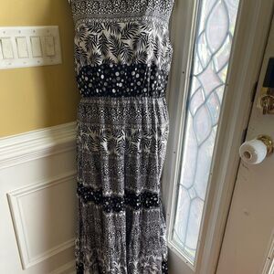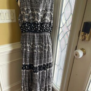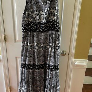 NWT Kaktus 100% Cotton Black and white print maxi dress short sleeves size large elastic waist see all pictures any questions please message.