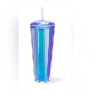 Keep yourself hydrated with the reusable tumbler for cold liquids like iced coffee, smoothies, or other cooler beverage options. Holds 3 cups of cold beverage and has an iridescent holographic coat with a fun, stylish design.
