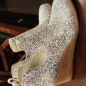 A soft almond toe adds classic appeal to a suede bootie that's set on a sturdy wedge and finished off with cool cutouts around the ankle. A cushioned OrthoLite® Eco™ footbed keeps feet supported for comfy all day wear.