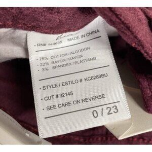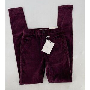 NWT KanCan Women's Ginny Mid Rise Velvet Ankle Skinny Burgundy Pants Size 23