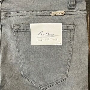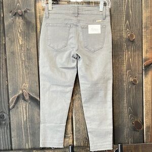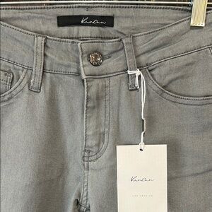 New with tags. Kancan brand cropped jeans. Size 3 / 25. Grey. Raw hem. Mid-rise. Stretchy denim.