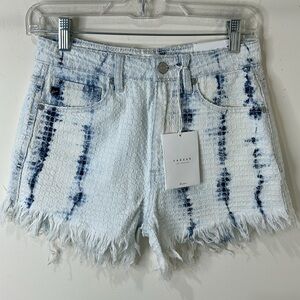 NWT Kancan Los Angeles Blue White Tie Dye Textured Raw Hem High Rise Shorts