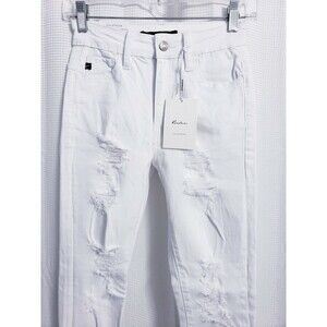 This is a NWT Kancun Hi-Rise Estillo Distressed White Jeans Women's size 1 / 24. There are no stains.