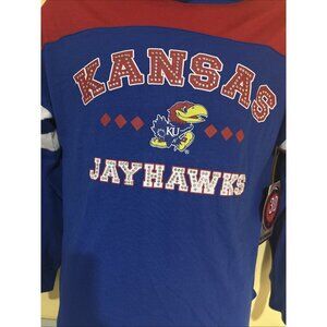 NWT Kansas Jayhawks Colosseum Girls Blue Logo Hooded T-Shirt M