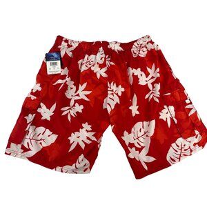 NWT Kanu Surf Men's Swimming Trunks Built-In Netting Drawstring 3X Red Floral