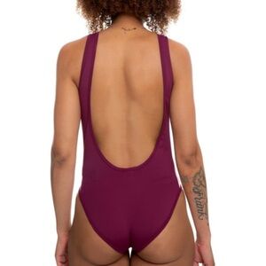 Kappa women’s Banda auber bodysuit in a dark pink/purple color. Size small.