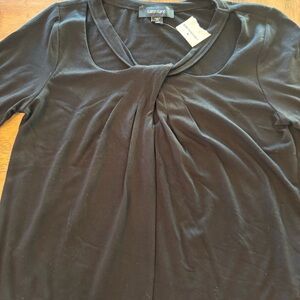 NWT Karen Kane Cutout Jersey Top in Black, XS, Cutout crisscross neck,Short sleeves,