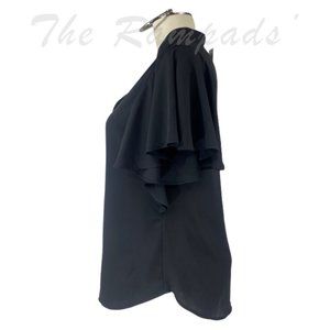NWT Karen Kane Flora & Fauna Style Black Cascade Sleeve Top Size Small