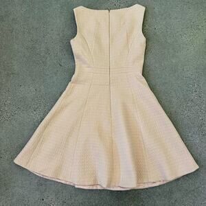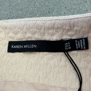 NWT Vintage Karen Millen Women's Fit & Flare Dress in a flattering pale pink. Featuring a sleeveless, double-breasted button-front design with a classic boat neck and back zip closure, it combines elegance with comfort. Made from 100% cotton, this knee-length dress is perfect for formal occasions or sophisticated daytime looks.