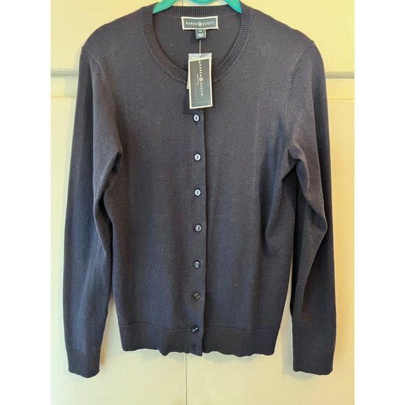 NWT Karen Scott “Jersey Cardi” Navy Blue Cardigan, Petite Small Sweater
