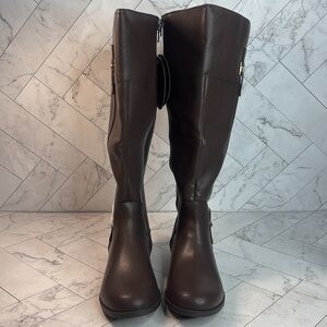 NWT Karen Scott Womens Edenn Brown Wide Calf Faux Leather Riding Boots Size 9M