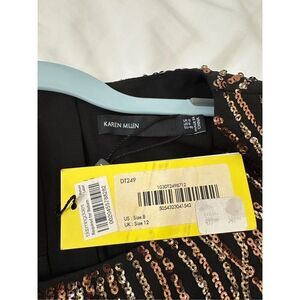 NWT Karen Millen Dazzling Black & Gold Sequin Cocktail Party Cocktail Shift Dress Size 8