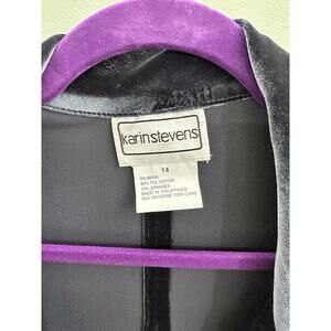 NWT Karin Stevens Vintage Velvet Grey Button Up Top With Open Back Size 14