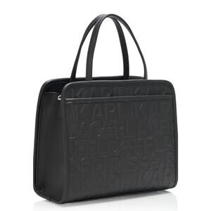 NWT Karl Lagerfeld Black Embossed LOGO Maybelle Satchel Handbag Purse