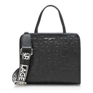 Karl Lagerfeld Black Embossed Logo Paris Maybelle Satchel Handbag
