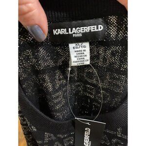 NWT Karl Lagerfeld Black Sequin "Bonjour" Sweater For Women Size S
