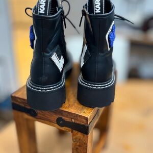 Karl Lagerfeld combat' boots. Black with patches new with tags .