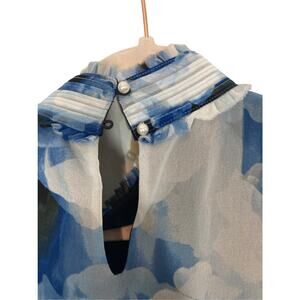 NWT Karl Lagerfeld Floral Peephole Ruffle Bloomecore Office Blouse