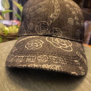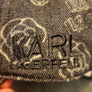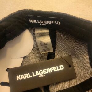 NWT Karl Lagerfeld Gray Denim Women's Ballcap - Floral/Wording In Cream