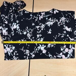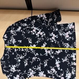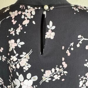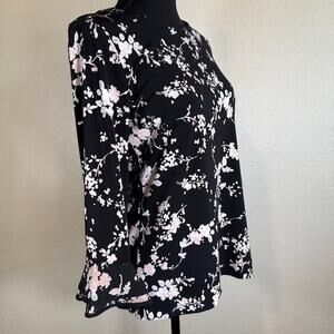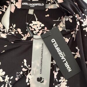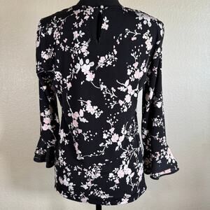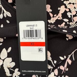 NWT Karl Lagerfeld Paris Black Blouse Shirt Pink Floral Bell Sleeve Women XS