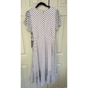 NWT Karl Lagerfeld Paris Pink Black Polka Dot Ruffle Midi Dress Size 4 MSRP 148