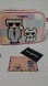 *Beautiful array of multicolored pastel colors in a unique checkerboard design with the iconic designer and his mascot cat (slightly "puffed up").