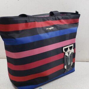 NWT Karl Lagerfeld w/COA Rainbow Striped Tote Bag