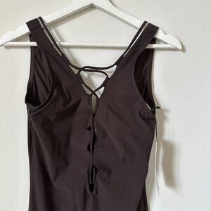 NWT Karla Colletto Entwi Plunge Tank One Piece Swimsuit Lace Up Front Size 14 US 10