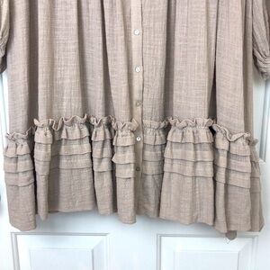 NWT Karlie Boho Tiered Mini Dress Size Medium Natural Tan Linen Color