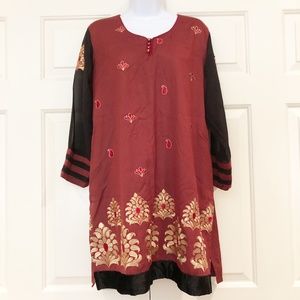 NWT Kashkha Authentic Traditional Kurti Kurta Indian Tunic Maroon Gold Black